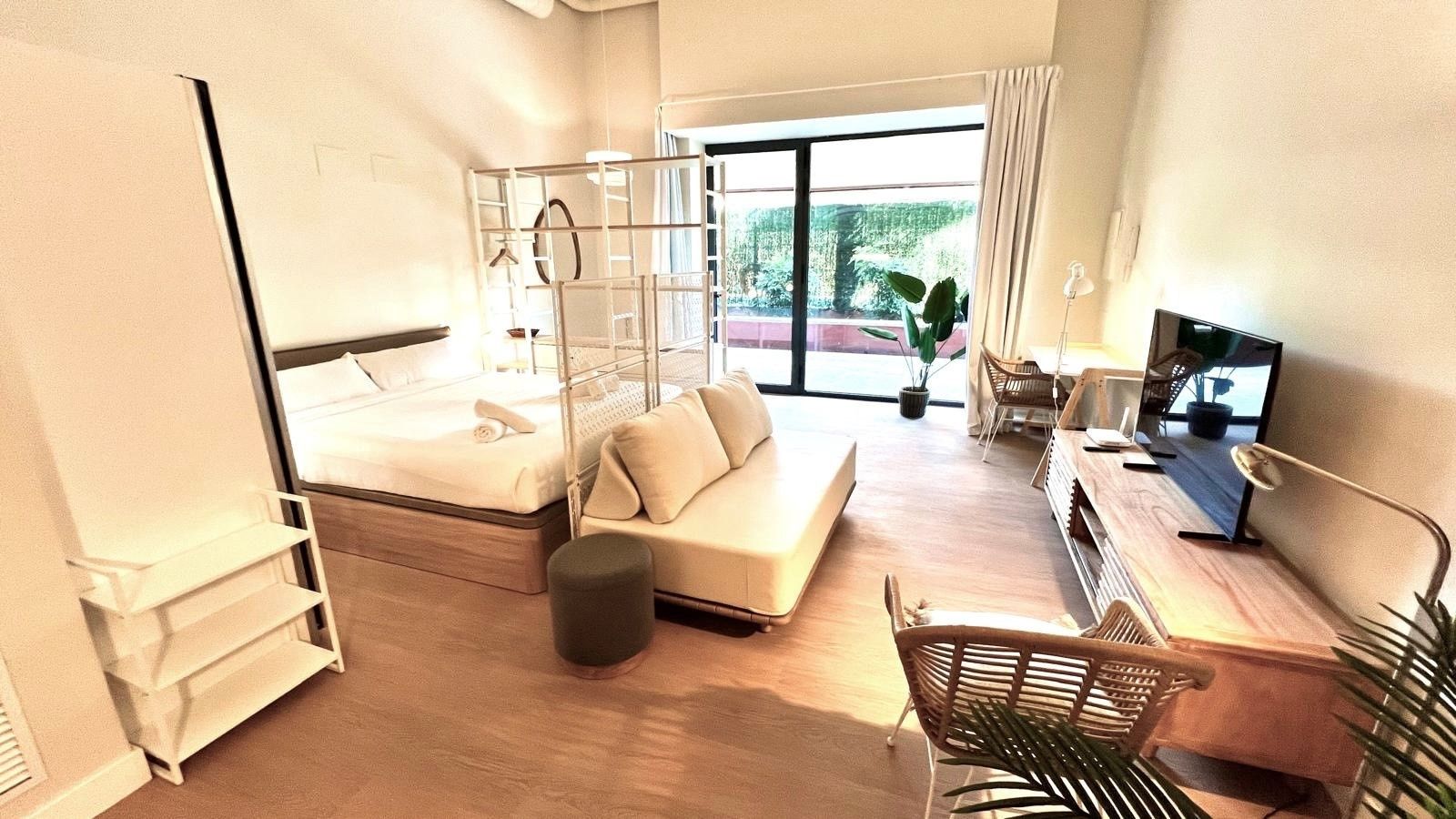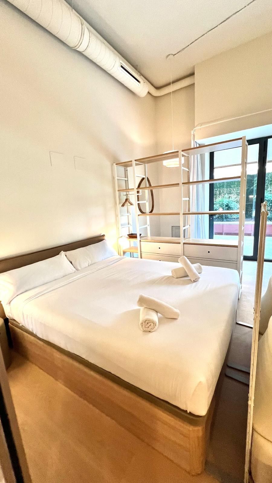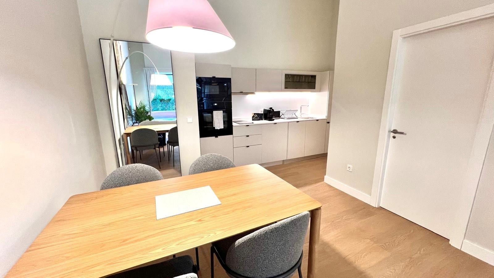 Estudio tipo loft, con altura de techo de 4 metros, amueblado para vivienda alquiler tipo temporal, todo nuevo, calefacción y aire acondicionado por conductos, cocina con electrodomesticos.