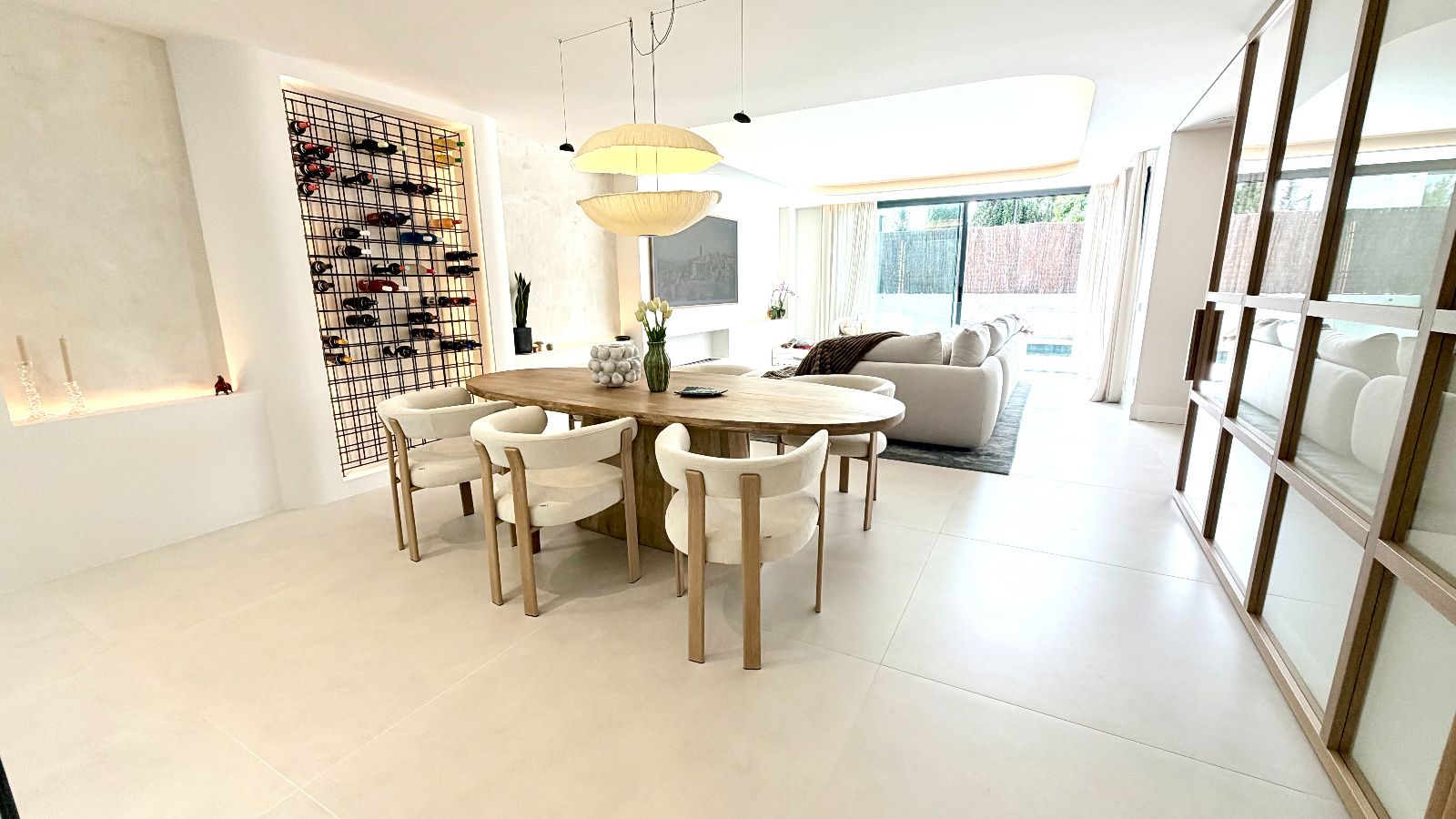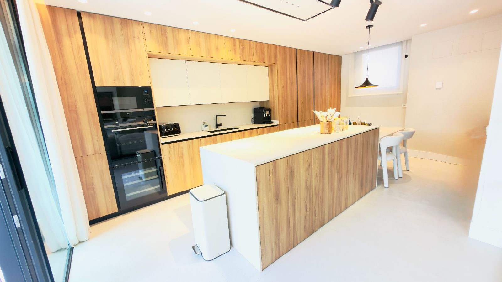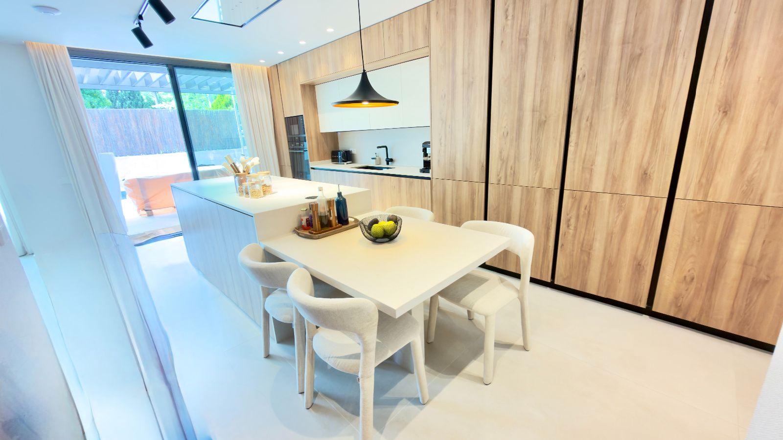 Espacioso salón- comedor con salida directa a idílico jardín con piscina, amplias zonas de estar con gran entrada de luz natural, Cocina de diseño exclusivo, completamente personalizada, dando prioridad a la funcionalidad con una gran isla con mucho espacio de almacenamiento y con placa oculta en la encimera, electrodomésticos de alta gama, cuarto de despensa amplio y optimizado. 1 dormitorio rodeado de ventanales con vistas increíbles, baño completo de diseño.