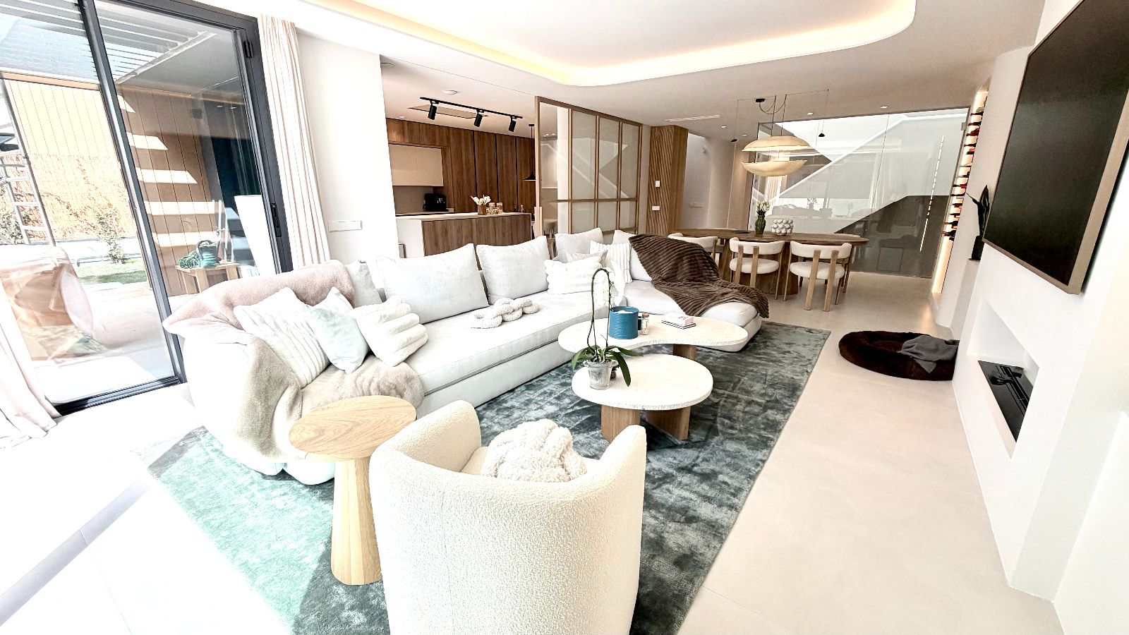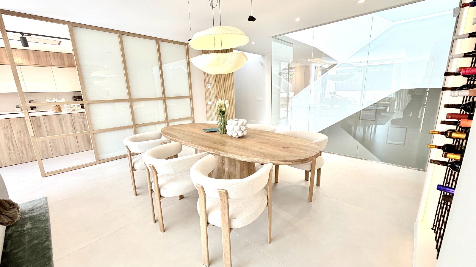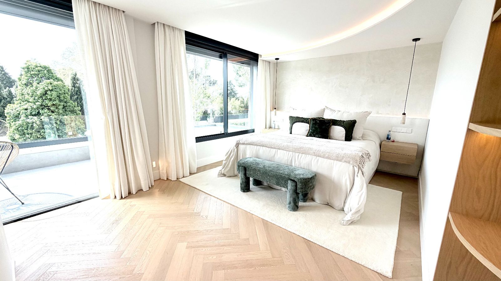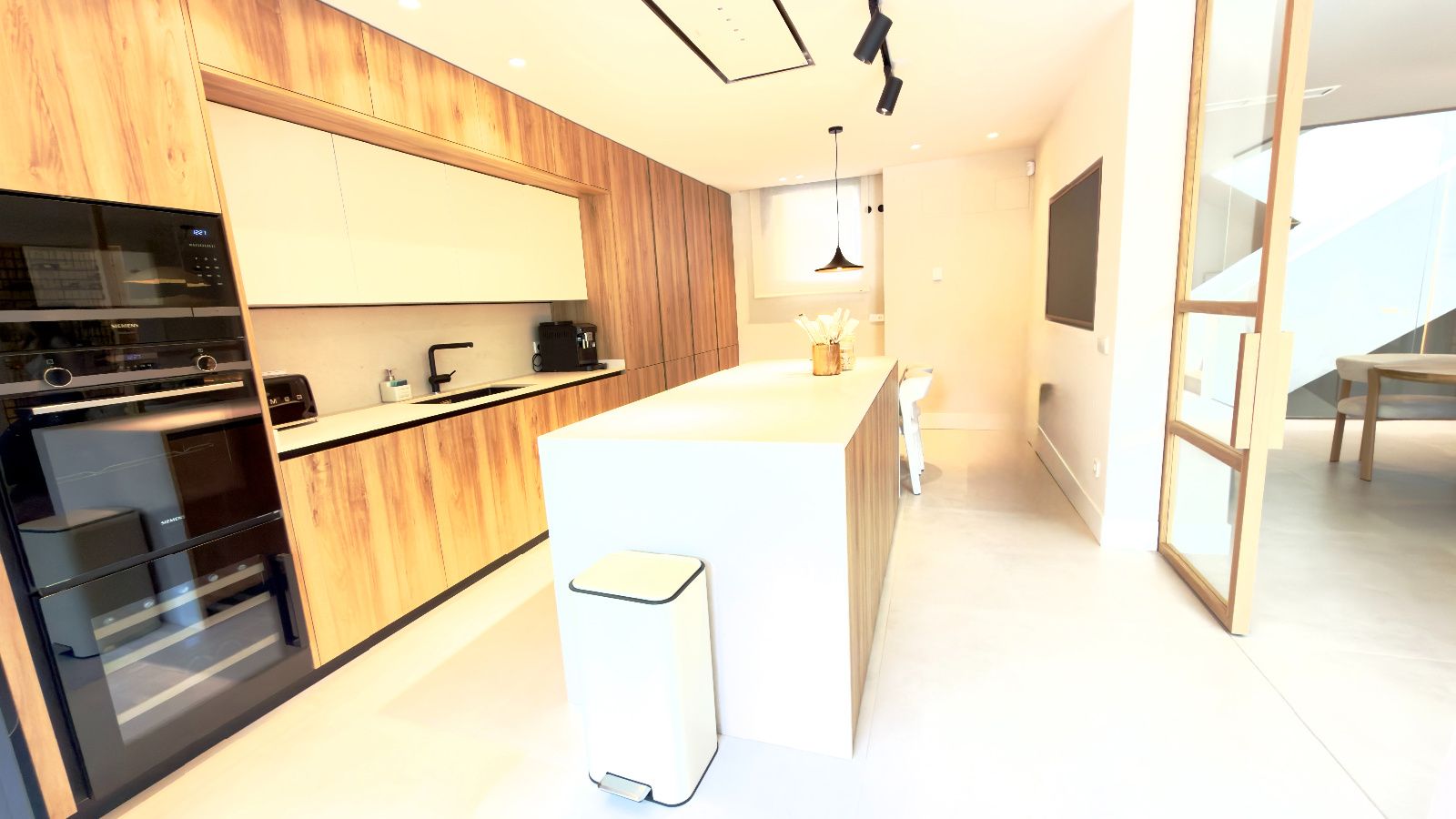 Espacioso salón- comedor con salida directa a idílico jardín con piscina, amplias zonas de estar con gran entrada de luz natural, Cocina de diseño exclusivo, completamente personalizada, dando prioridad a la funcionalidad con una gran isla con mucho espacio de almacenamiento y con placa oculta en la encimera, electrodomésticos de alta gama, cuarto de despensa amplio y optimizado. 1 dormitorio rodeado de ventanales con vistas increíbles, baño completo de diseño.