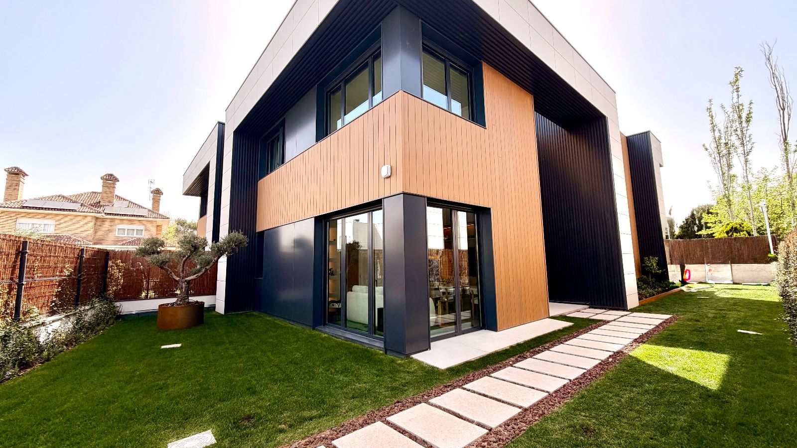 VANDERBL HOMES GESTIONA LA VENTA de  chalet pareado de lujo, en  una de las mejores zonas nuevas de Pozuelo, reformado con diseño exclusivo, piscina y jardín | 4 dormitorios( antes 5) | Máxima seguridad y domótica, espectacular vivienda unifamiliar completamente reformada, con calidades premium y diseño de autor, ubicada en una zona residencial tranquila y exclusiva