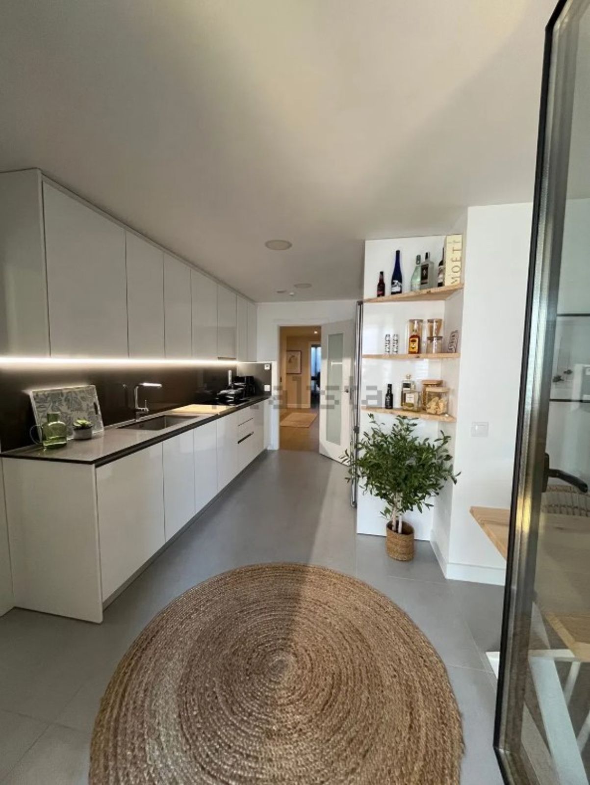 La vivienda cuenta con 3 amplios dormitorios, 2 baños completos totalmente equipados (uno de ellos en suite), una terraza acristalada totalmente habitable durante todo el año, y lavandería amueblada a medida. El salón y la cocina están conectados por dos accesos, lo que aporta comodidad y amplitud al espacio. Toda la vivienda disfruta de una gran luminosidad natural.