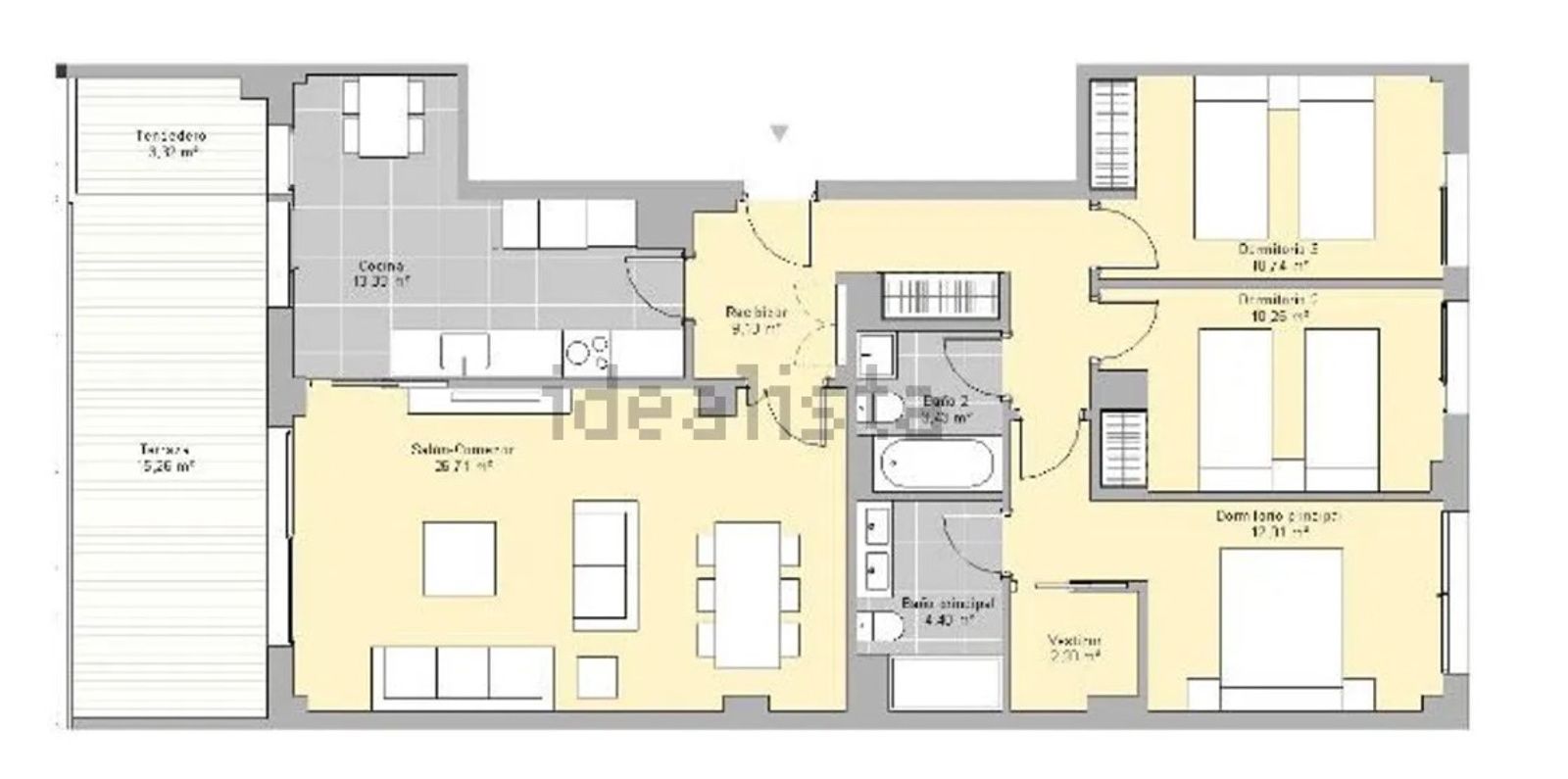 Características principales • Superficie amplia y muy luminosa. • 3 dormitorios y 2 baños (uno en suite con vestidor). • Gran salón-comedor con acceso a terraza soleada con vistas a la Sierra. Cocina de diseño equipada y amueblada con mobiliario en blanco brillo, encimera Silestone Cemento Spa y electrodomésticos de alta gama: lavadora, lavavajillas, frigorífico, placa de inducción, campana, horno y microondas en columna. Baños personalizados con acabados Pamesa y muebles Torvisco. Calefacción por suelo radiante e instalación completa de aire acondicionado.
