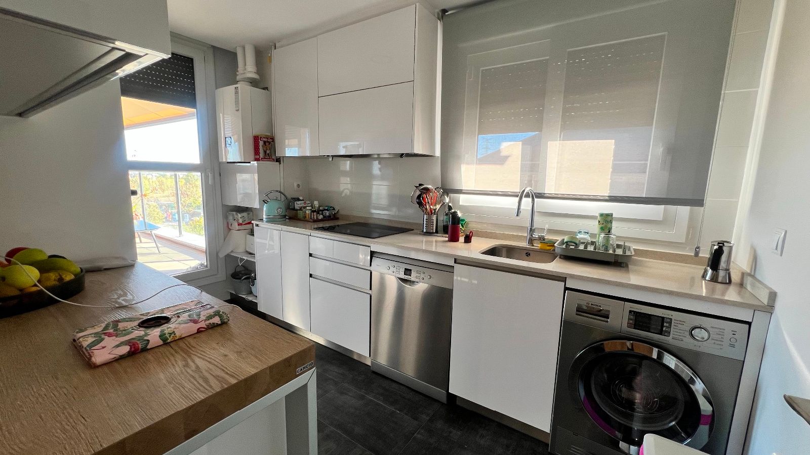 La vivienda cuenta con dos amplias plazas de garaje, una de ellas con instalación para carga de coches eléctricos, un amplio trastero, piscina, zona de parque infantil y área deportivas comunes de 8.000 metros cuadrados (privado). Además, cuenta con placas solares para su propio consumo eléctrico , agua caliente , la calefacción es de Gas Natural. También cuenta con toldos motorizados con mando a distancia en todas las ventanas y terrazas, domótica para el control de persianas, calefacción y climatización.