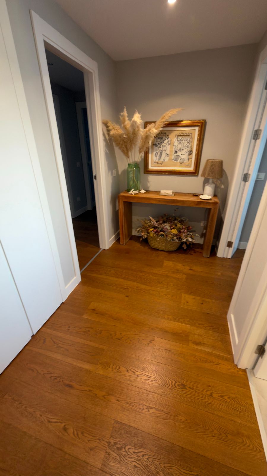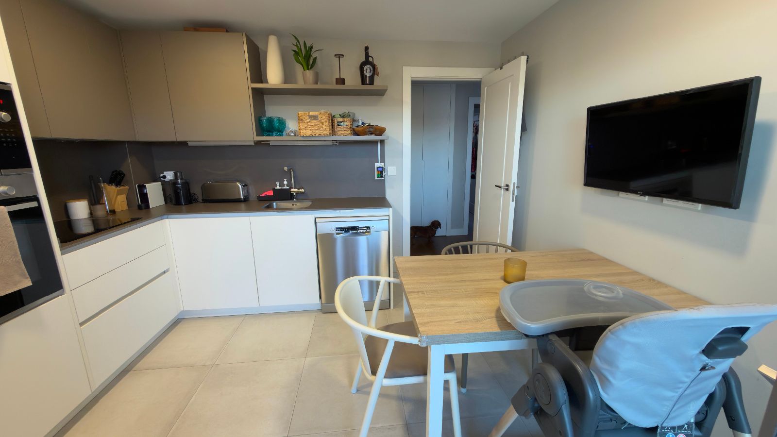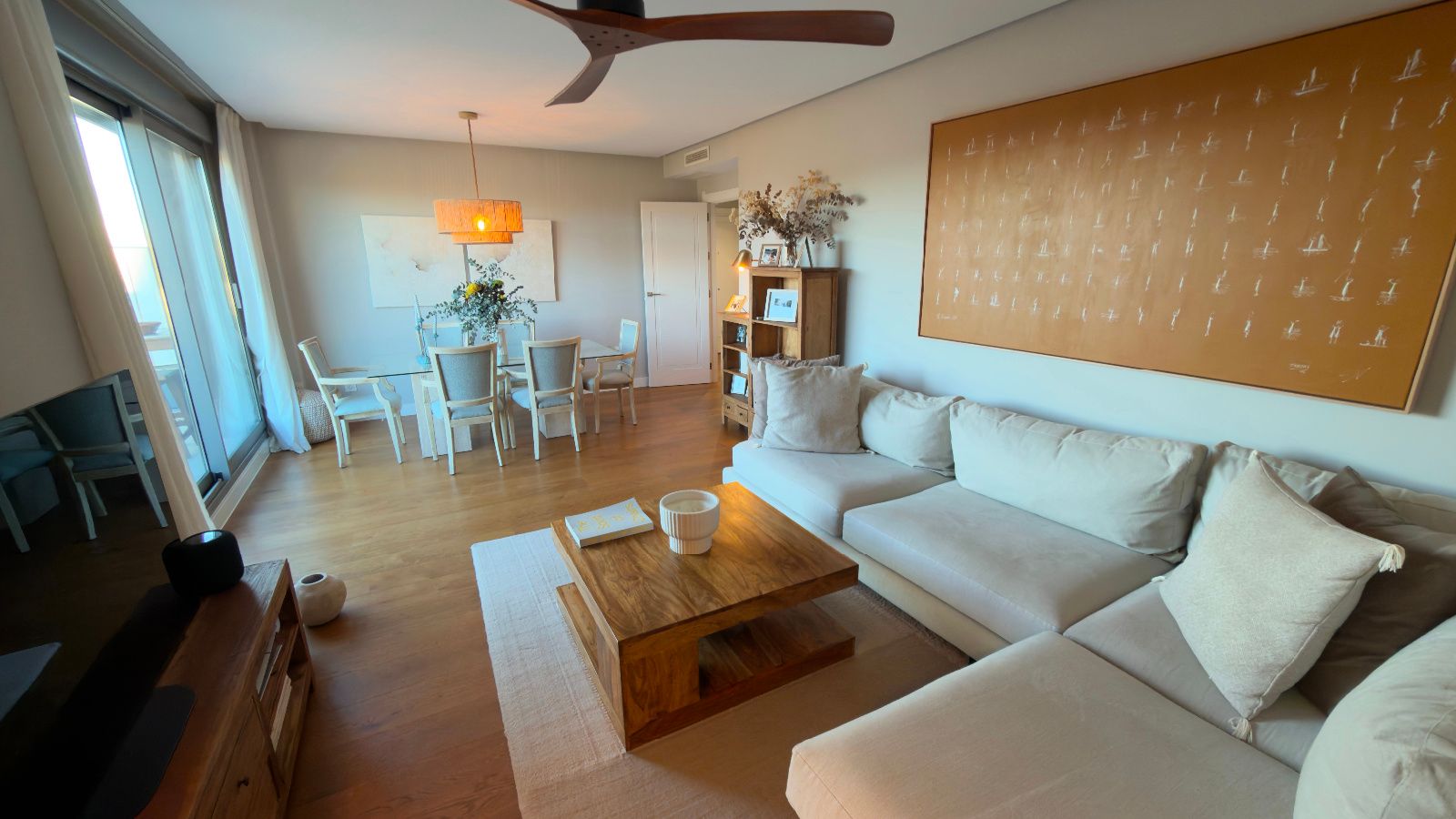 Al acceder a la vivienda, un amplio hall de entrada nos da la bienvenida y nos conduce a una cocina independiente, espaciosa y funcional, con acceso directo a la zona de lavandería. A continuación, se abre un luminoso salón-comedor con grandes ventanales de suelo a techo, que inundan el espacio de luz natural y ofrecen salida directa a una acogedora terraza.