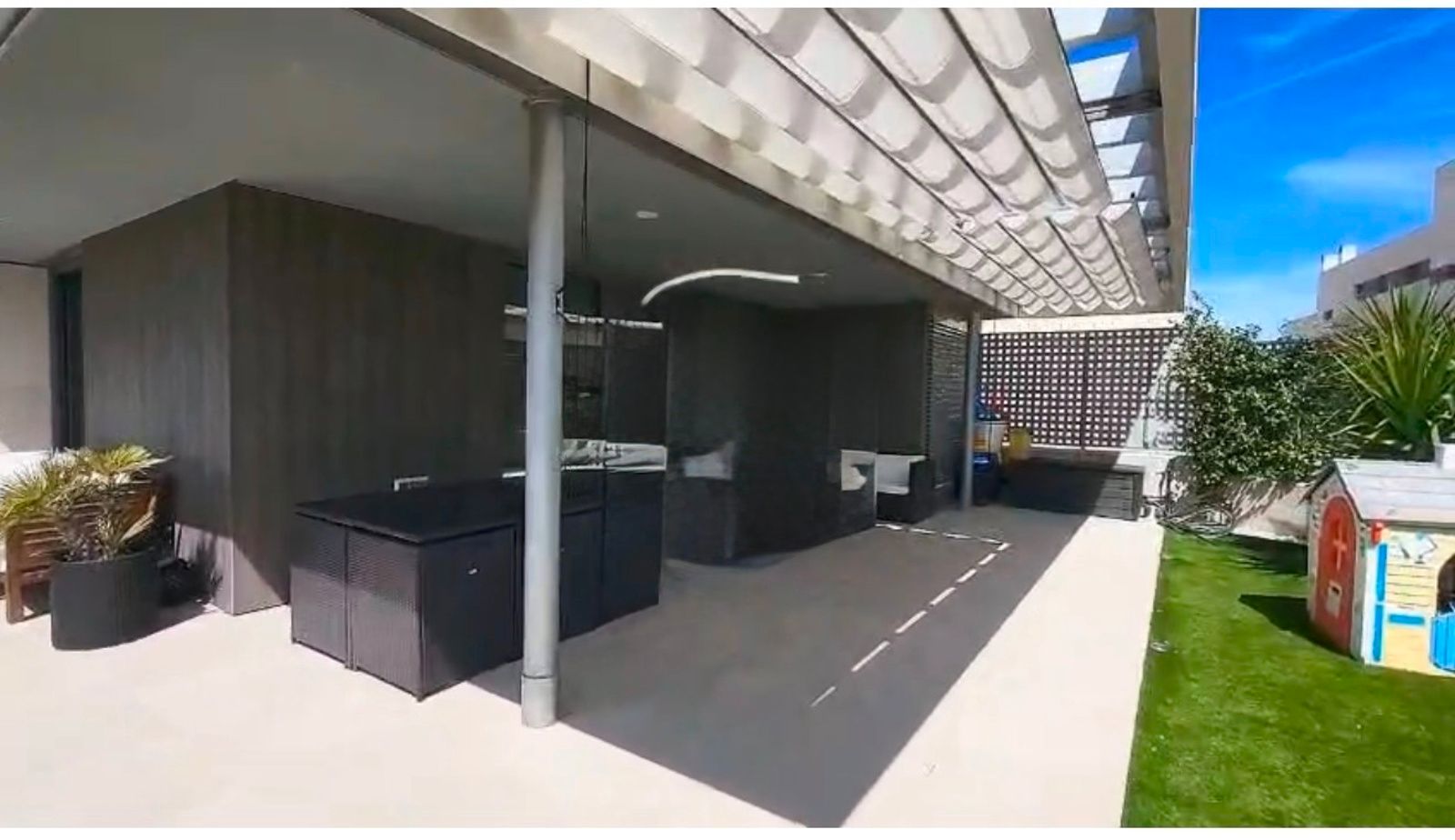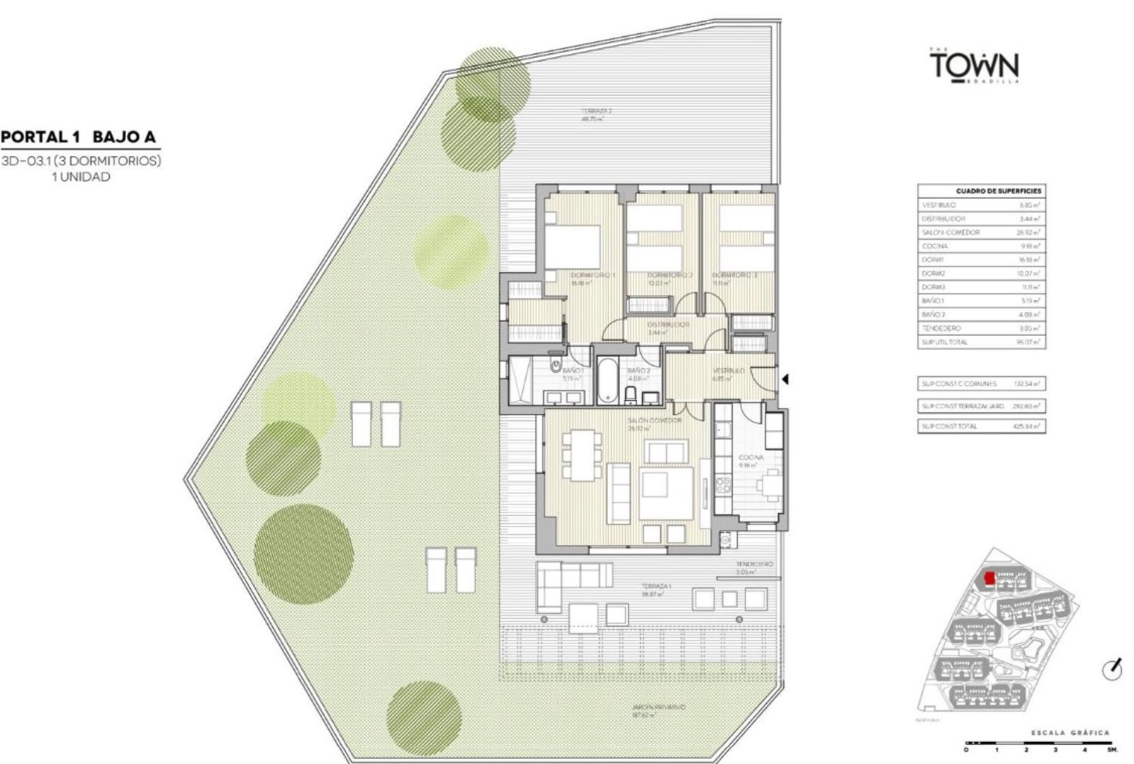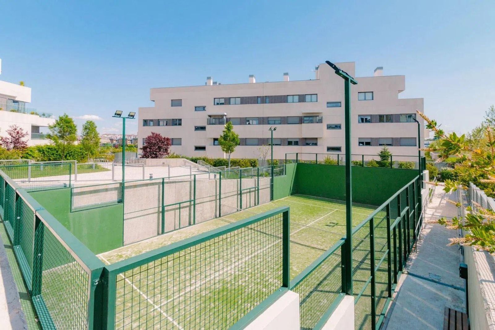 Este exquisito piso bajo, orientado al suroeste, se distingue por su majestuoso jardín privado de 293 metros cuadrados, ya completamente consolidado con césped artificial, arbolado y un sistema de riego automático, realzado por una cuidada iluminación exterior. El interior es un reflejo de elegancia y amplitud: cuenta con tres dormitorios espaciosos, siendo el principal una suite con vestidor. Los dos baños son amplios y modernos. El salón, integrado con una cocina de diseño, se abre con grandes ventanales que inundan el ambiente de luz natural, tendedero modificado y cerrado con mueble para productos de limpieza. La urbanización, cerrada y vigilada, ofrece una piscina, gimnasio, gastrobar, amplias zonas verdes y áreas infantiles, además de conserjería las 24 horas, videovigilancia y dos plazas de garaje. Un hogar de ensueño, pensado para el confort y la sofisticación