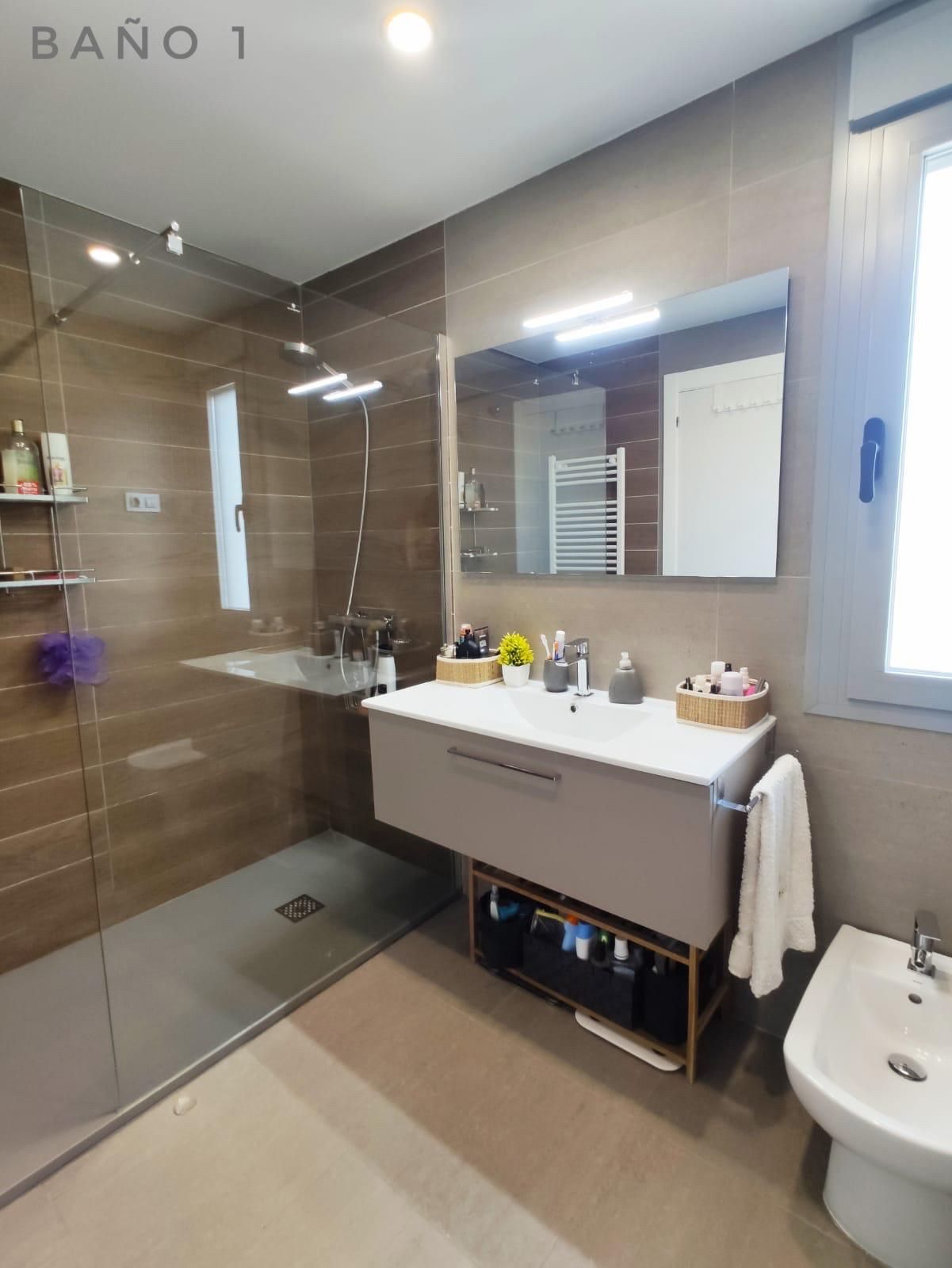 En la primera planta: 1 habitación con baño en suite, vestidor y terraza, 2 habitaciones y 1 baño completo.