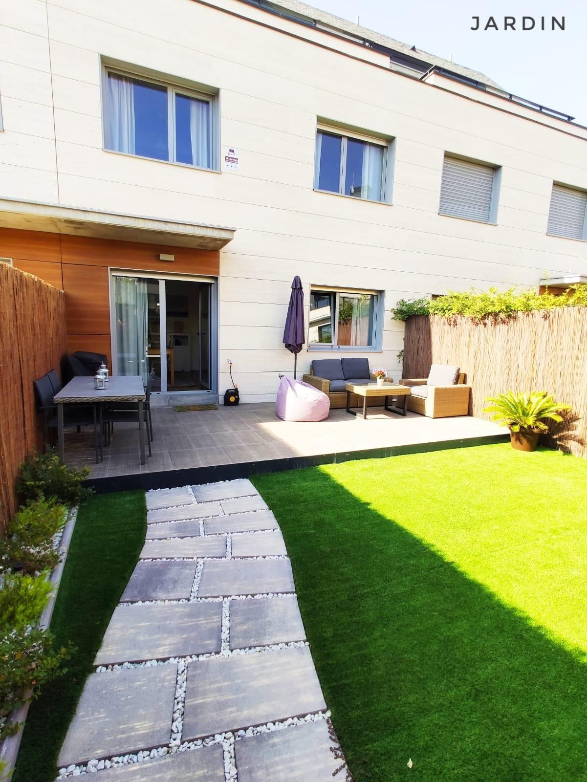 El exterior cuenta con un bonito jardín y una zona solada ideal para disfrutar de comidas al aire libre en compañía de familiares y amigos. Además, la propiedad cuenta con placas solares para agua caliente, calefacción por conducto graduable por estancias, garantizando eficiencia energética y confort durante todo el año.